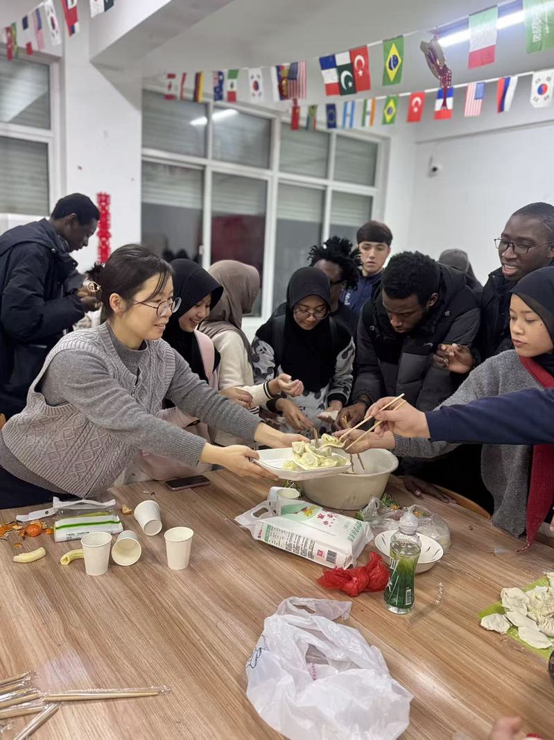 为迎接2026新年的到来,国际交流学院举办了以“包饺子,迎新年”为主题的留学生文化交流活动。来自全球三十多个国家的近百名留学生与学院老师们齐聚一堂,通过亲手包饺子、歌舞表演等丰富形式,共同体验中国传统文化,在欢声笑语中迎接崭新的一年。