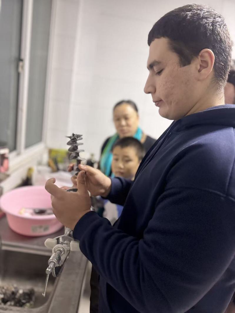 包饺子环节成为全场的焦点。留学生们在老师指导下,从调馅到包捏,一步步学习饺子的制作技艺。活动现场笑声不断,各国学生包的饺子形状各异,有的精致如元宝,有的创意独特。饺子下锅后,热气腾腾的饺子香弥漫整个会场,大家品尝着自己的劳动成果,互相评价谁的饺子最美味。